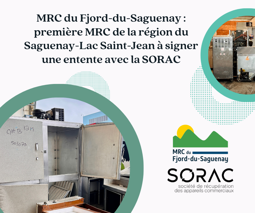 La MRC du Fjord-du-Saguenay se distingue par son engagement environnemental en devenant la première MRC de la région du Saguenay à signer une entente avec la SORAC. Cette entente marque une avancée significative dans la récupération des appareils de réfrigération et de congélation de type commercial et institutionnel sur l’ensemble du territoire de la MRC.